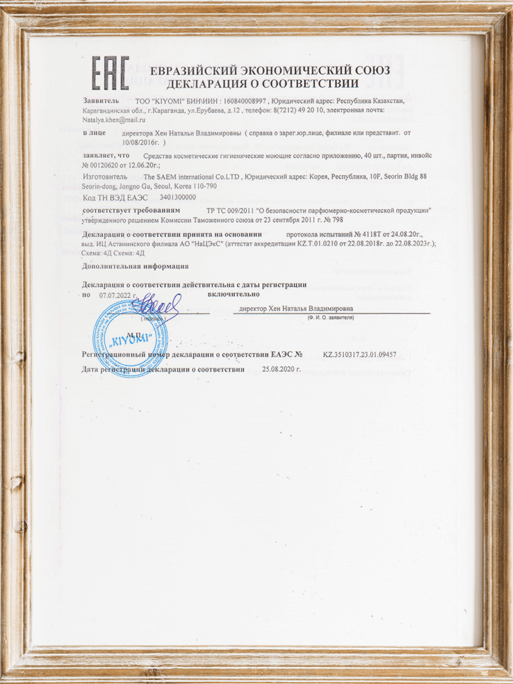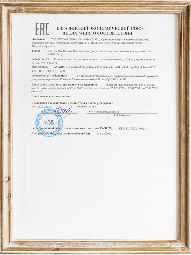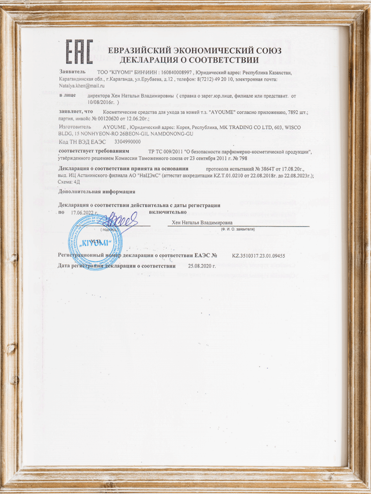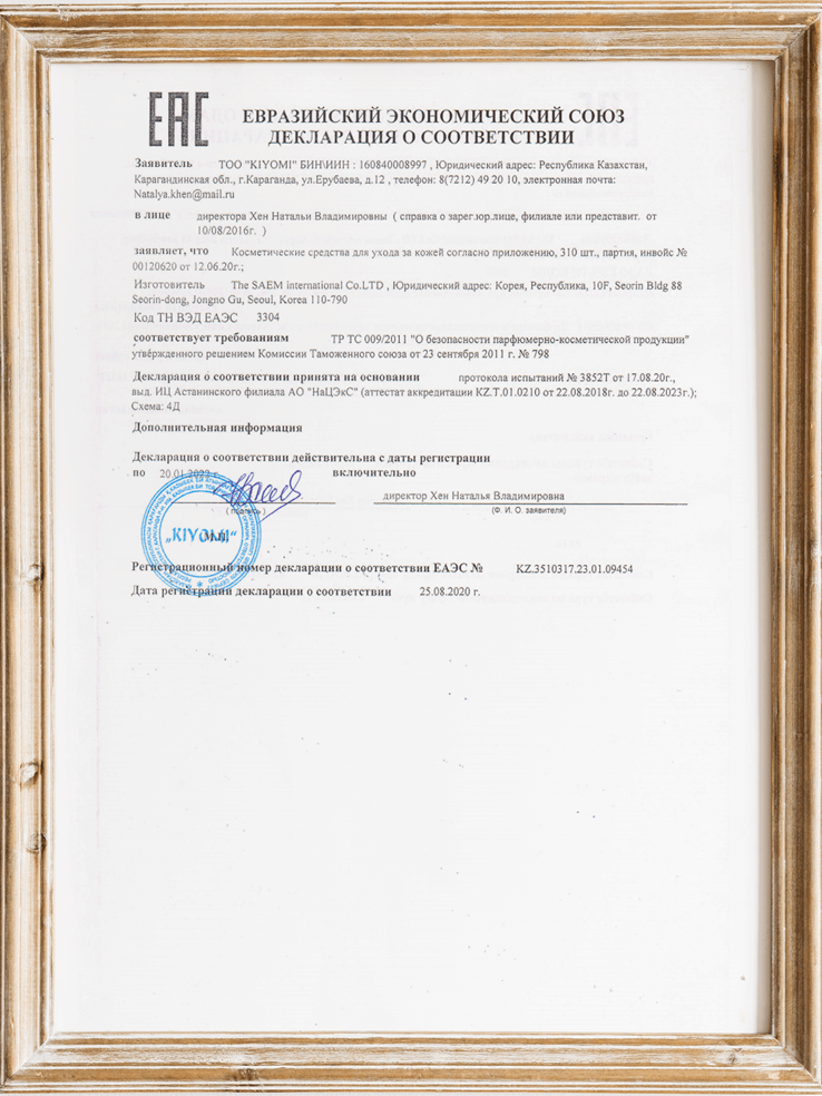 Приобретая косметику в нашем интернет-магазине, вы приобретаете настоящую оригинальную косметику. Вся наша продукция сертифицирована и имеет все необходимые подтверждающие документы по законодательству РК. Каждую позицию в нашем каталоге мы персонально оформляем на заводах-производителях и доставляем в РК.